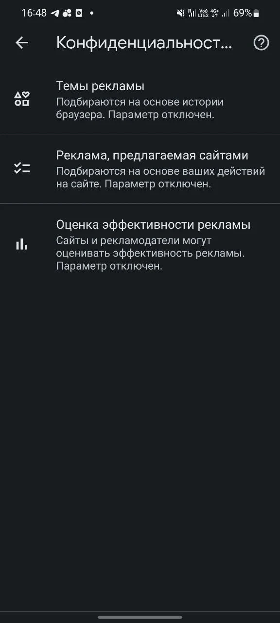 Мне предлагалось согласится с тем, что хром будет предоставлять данные о моих интересах сторонним сайтам. И делать он это будет на основе истории браузера! Перейти к настройкам приватности можно по ссылке. Вот так они выглядят: